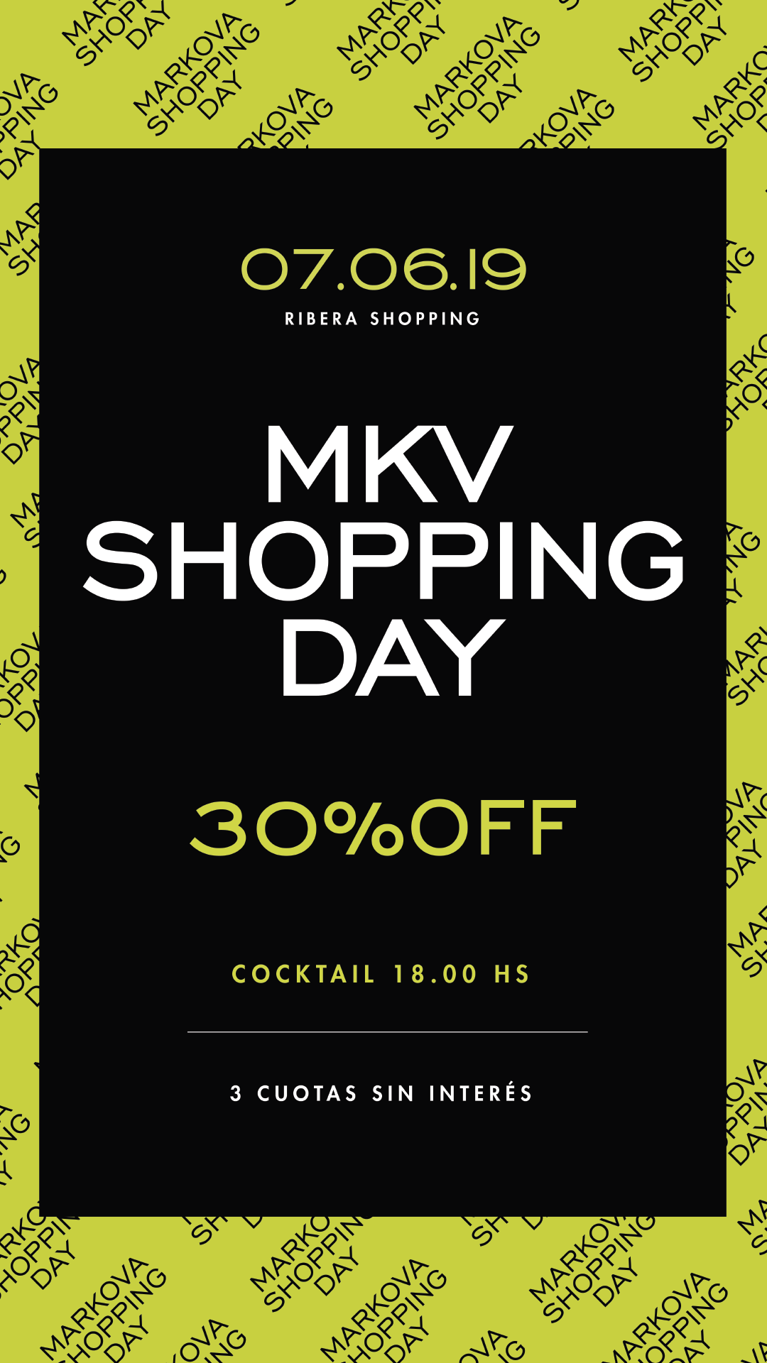 PARA MÁS INFORMACIÓN CONSULTE EN MARKOVA.COM VÁLIDO EL 07/06/19 EN EL LOCAL MARKOVA DE RIBERA SHOPPING. DE 10 A 22 HS. 30% DE DESCUENTO EN COMPRAS DE PRENDAS DE LA COLECCIÓN OTOÑO – INVIERNO 2019, CON TODOS LOS MEDIOS DE PAGO QUE HABITUALMENTE ACEPTA EL LOCAL. EL DESCUENTO SE EFECTIVIZARÁ EN LÍNEA DE CAJAS Y ES ACUMULABLE CON EL PROGRAMA AHORA 3 DE CUOTAS SIN INTERÉS CON LAS TARJETAS DE CRÉDITO HABITUALMENTE ACEPTADAS POR EL LOCAL. CONSULTE COSTO FINANCIERO TOTAL CON EL EMISOR DE SU TARJETA. NO ACUMULABLE CON OTRAS PROMOCIONES O DESCUENTOS. DE 18 A 21 HS: COCKTAIL PARA MAYORES DE 18 AÑOS. INGRESO POR ORDEN DE LLEGADA EN CUPOS MÁXIMOS DE 129 PERSONAS SIMULTÁNEAMENTE. ORGANIZA: ANDINO DEL BARCO MARCELO RENE, CUIT: 20164014496, AVELLANEDA 1856 SANTO TOME , SANTA FE. BEBER CON MODERACIÓN. PROHIBIDA SU VENTA A MENORES DE 18 AÑOS